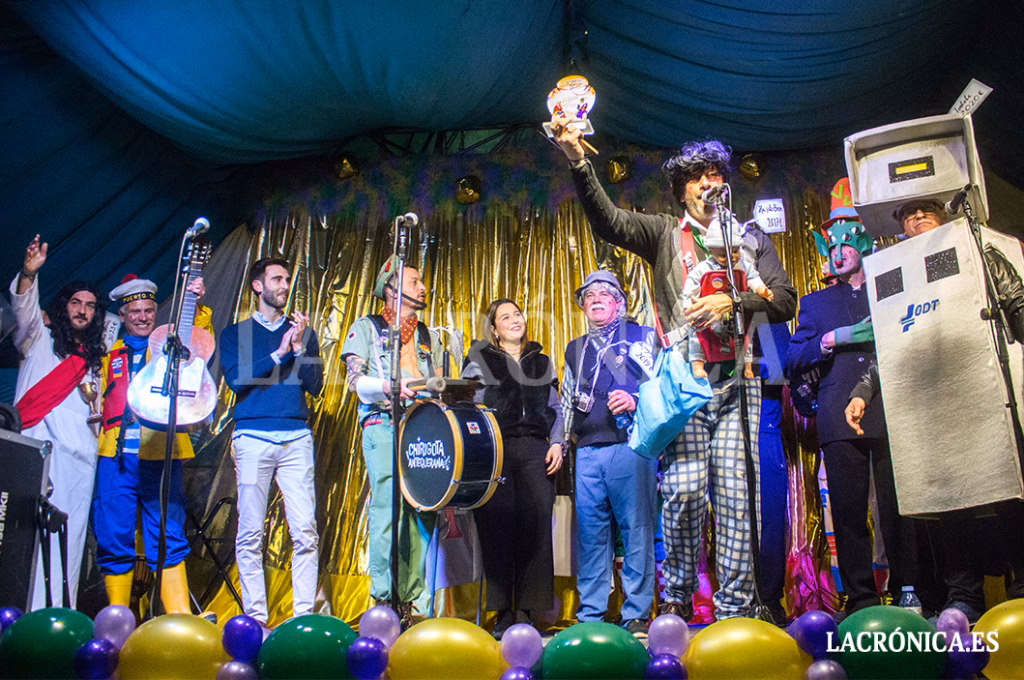 Ellos fueron los encargados de poner el punto final a la fiesta que se llevó a cabo en la siempre triste carpa del Patio de Caballos de la Plaza de Toros el domingo 15 en este Encuentro de Agrupaciones, en un escenario más pequeño que otros años donde algunas chirigotas no se pudieron apenas mover cuando el número de miembros era algo mayor, y ante un público que, aunque entregado y que llenó el sitio, dejó el espíritu carnavalero en la madrugada del sábado 14 ya que nadie fue disfrazado al evento más allá de los pregoneros de El Caldeo, algo que se les agradece pero que resulta insuficiente.