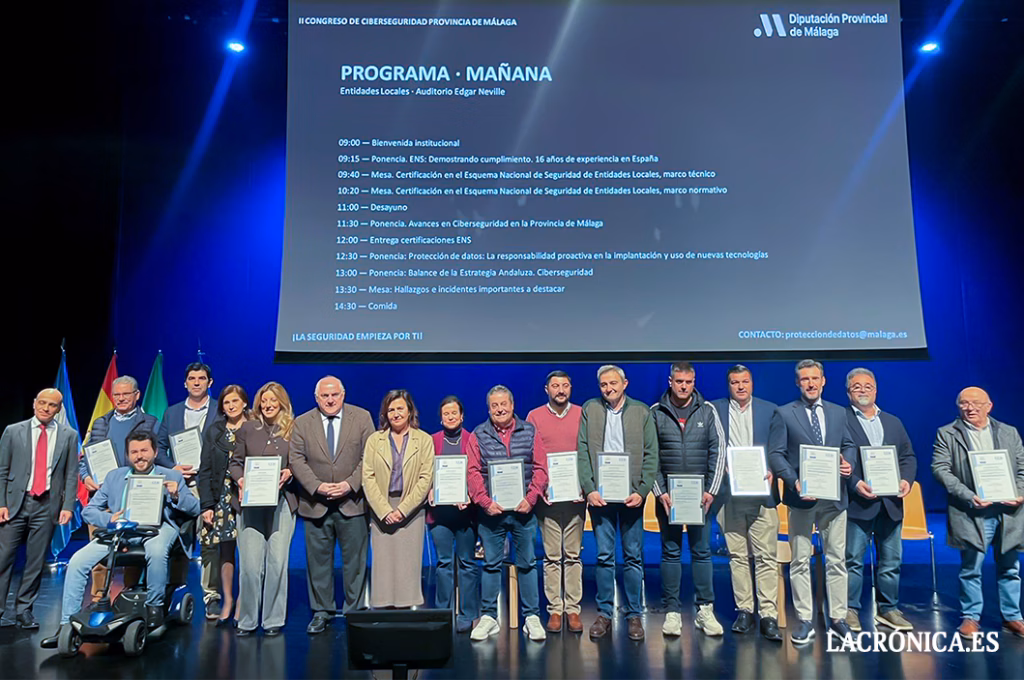 La seguridad digital de varios ayuntamientos de la comarca ha dado un paso decisivo esta semana tras la celebración del II Congreso de Ciberseguridad de la Provincia, organizado por la Diputación de Málaga y celebrado en el Auditorio Edgar Neville, donde se reunieron 400 profesionales procedentes de 75 ayuntamientos y 95 empresas proveedoras de servicios públicos, en una jornada centrada en los avances en ciberseguridad, la protección de datos y la Estrategia Andaluza de Ciberseguridad.
